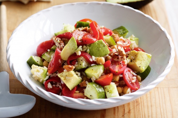 Save and share Rice salad with chickpeas, avocado & roast capsicum recipe