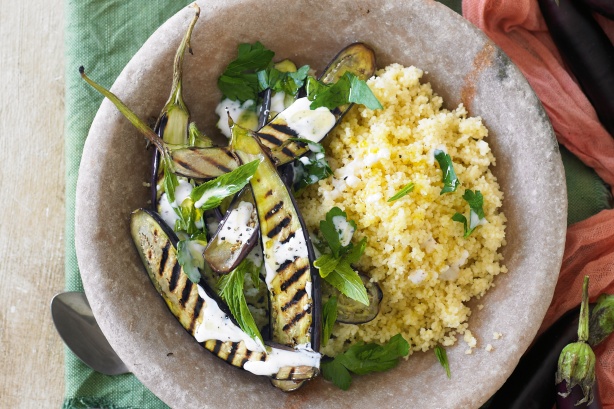 | Photo: Eggplant and couscous salad with yoghurt dressing recipe |